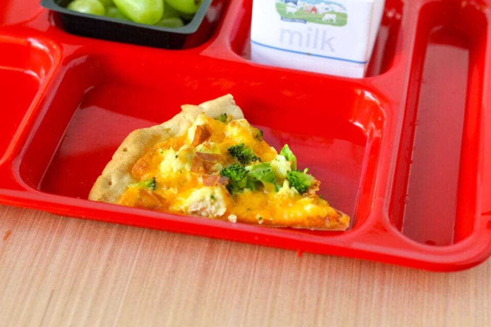 This nutrient-packed breakfast pizza combines a whole-grain crust with scrambled eggs, low-fat cheddar, tender broccoli, and lean turkey ham for a warm, satisfying start to the day. Each slice provides 10 grams of protein and 1.75 ounce equivalent of whole grains, supporting meal pattern requirements while introducing veggies in a familiar, student-friendly way. Lower in sodium and added sugar; this recipe offers a smart twist on a classic favorite—perfect for breakfast or breakfast-for-lunch service.