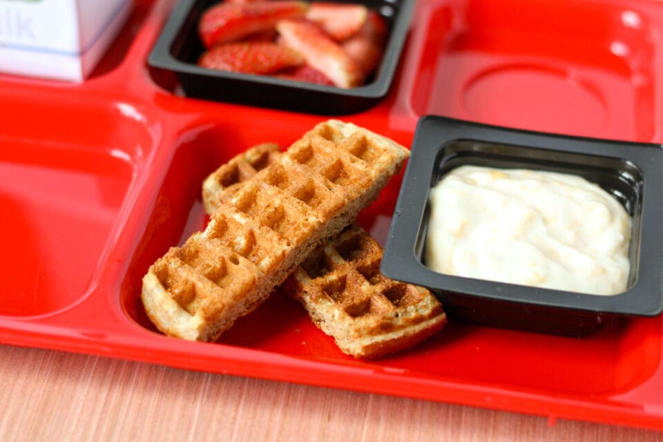 - Using a #12 disher, serve ⅓ cup to each student alongside waffles, pancakes, bagels, or other breakfast grain. Hold and serve at 41°F or below.